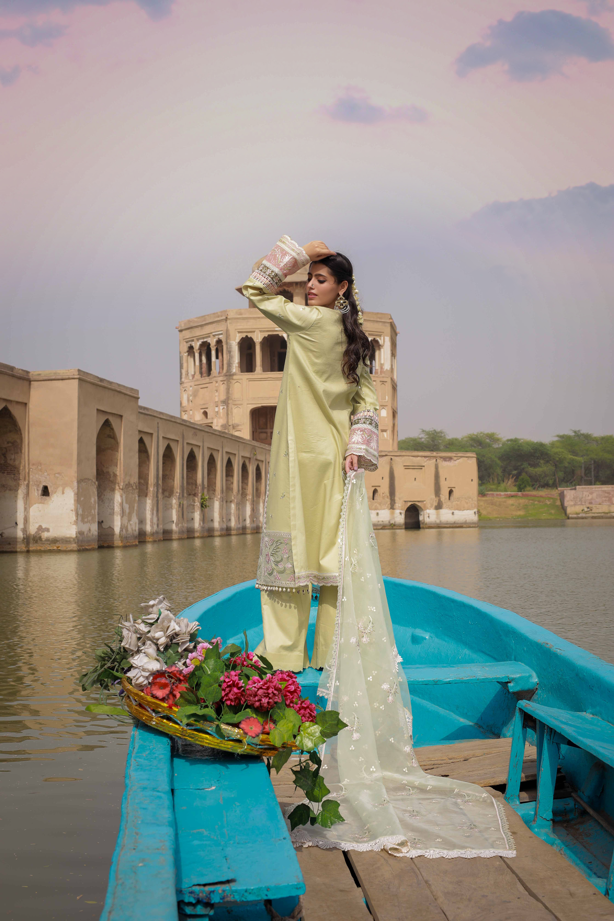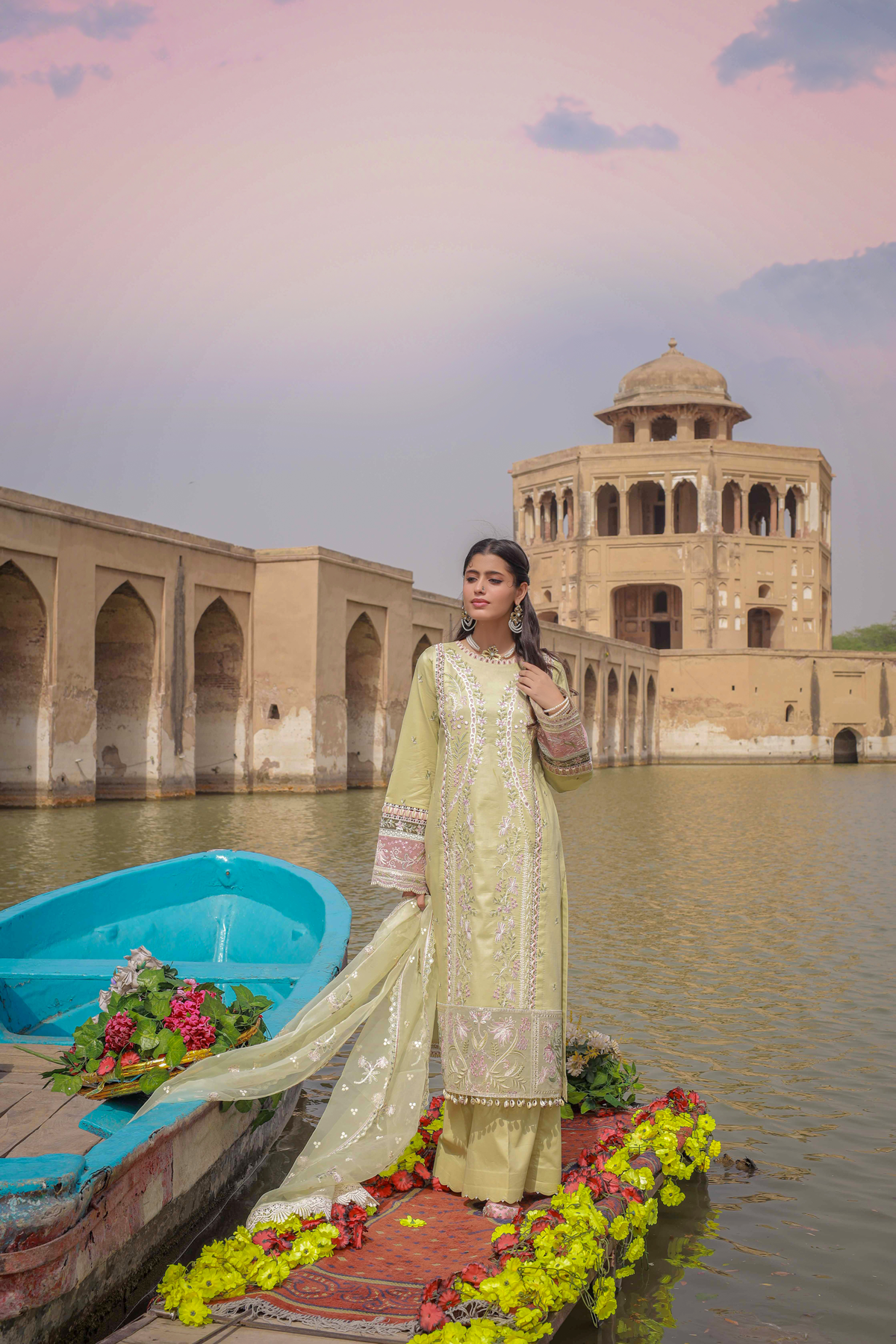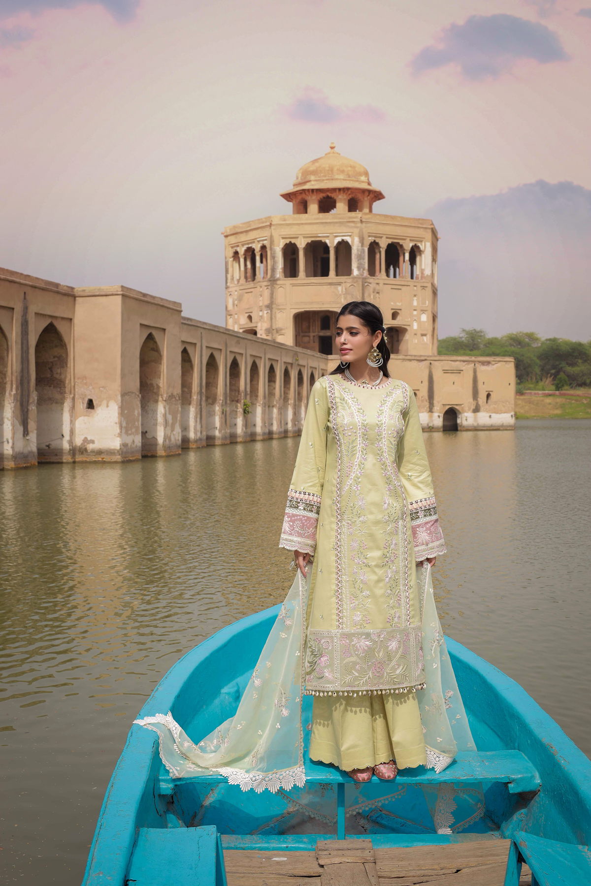 Shirt Embroidered Front Center Panel Embroidered Side Panels Right & Left Embroidered Border Front Embroidered Sleeves Embroidered Patches Sleeves Embroidered Border Back & Sleeves Plain Fabric Back Dupatta Embroidered Oragnza Dupatta Trouser Plain Trouser