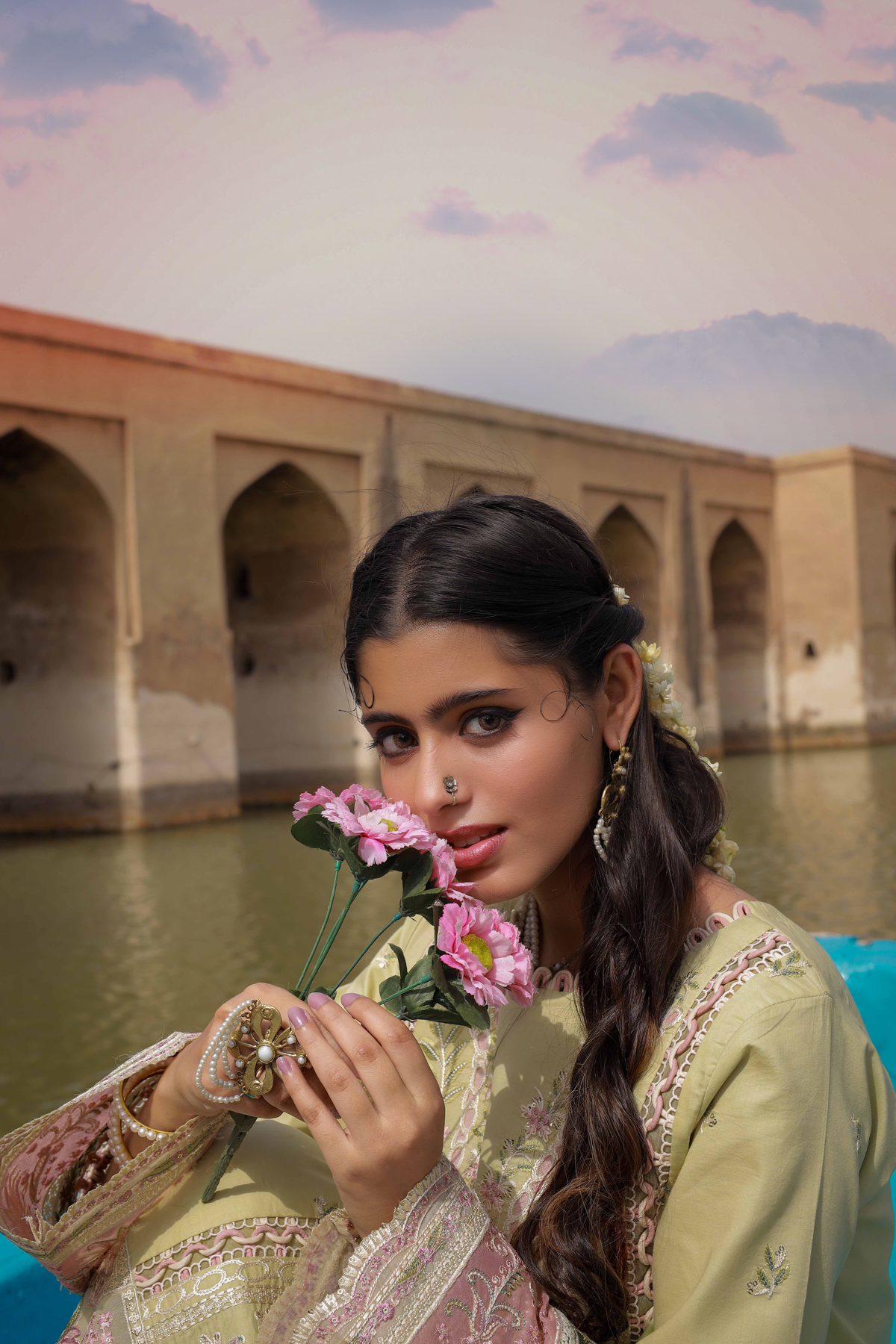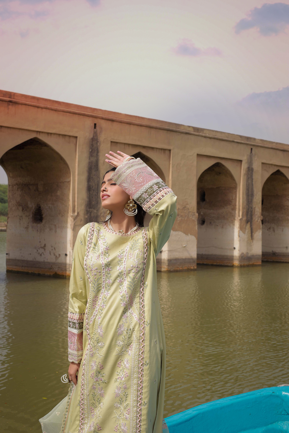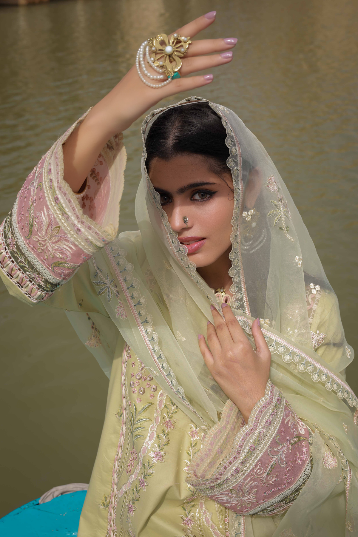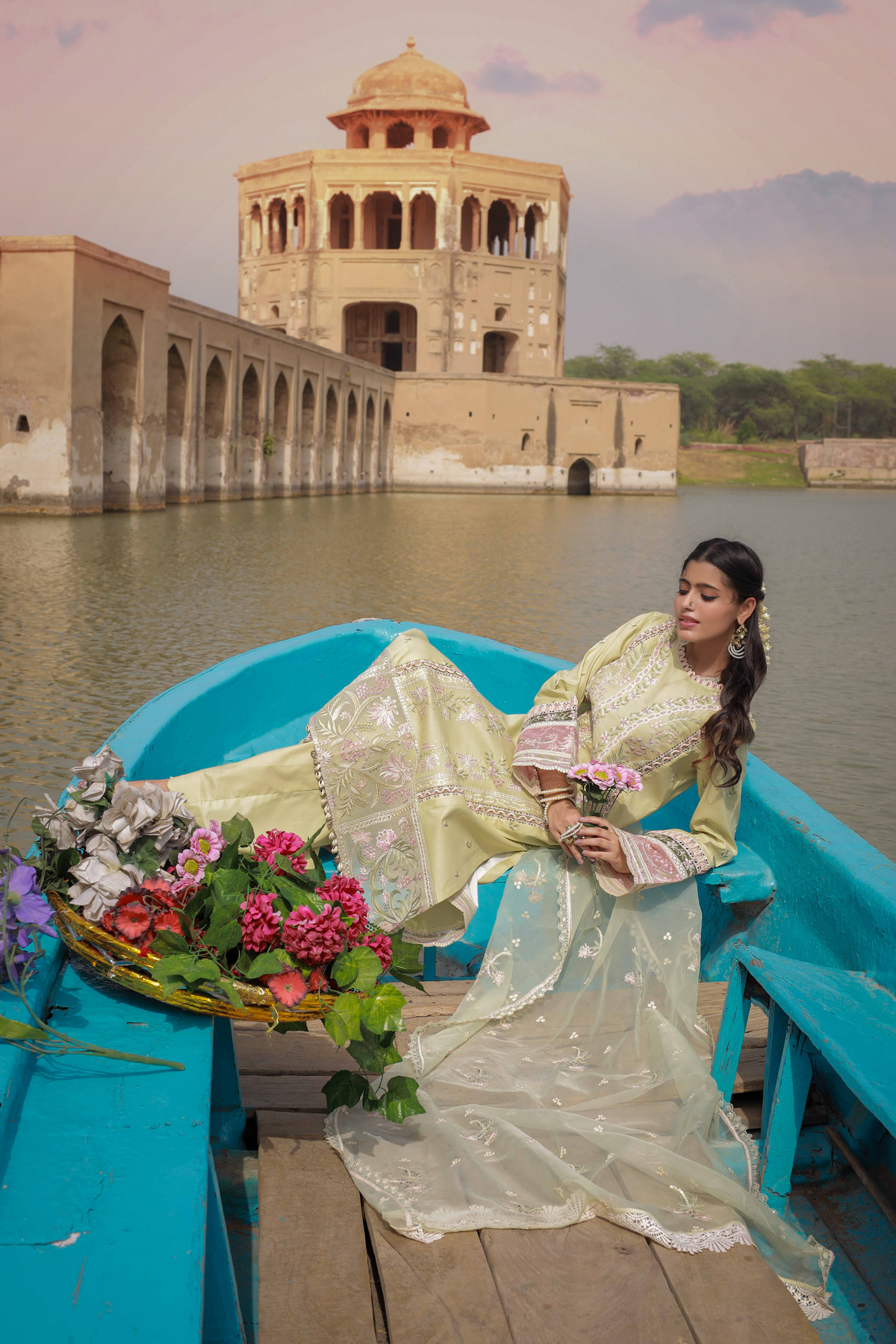 Shirt Embroidered Front Center Panel Embroidered Side Panels Right & Left Embroidered Border Front Embroidered Sleeves Embroidered Patches Sleeves Embroidered Border Back & Sleeves Plain Fabric Back Dupatta Embroidered Oragnza Dupatta Trouser Plain Trouser